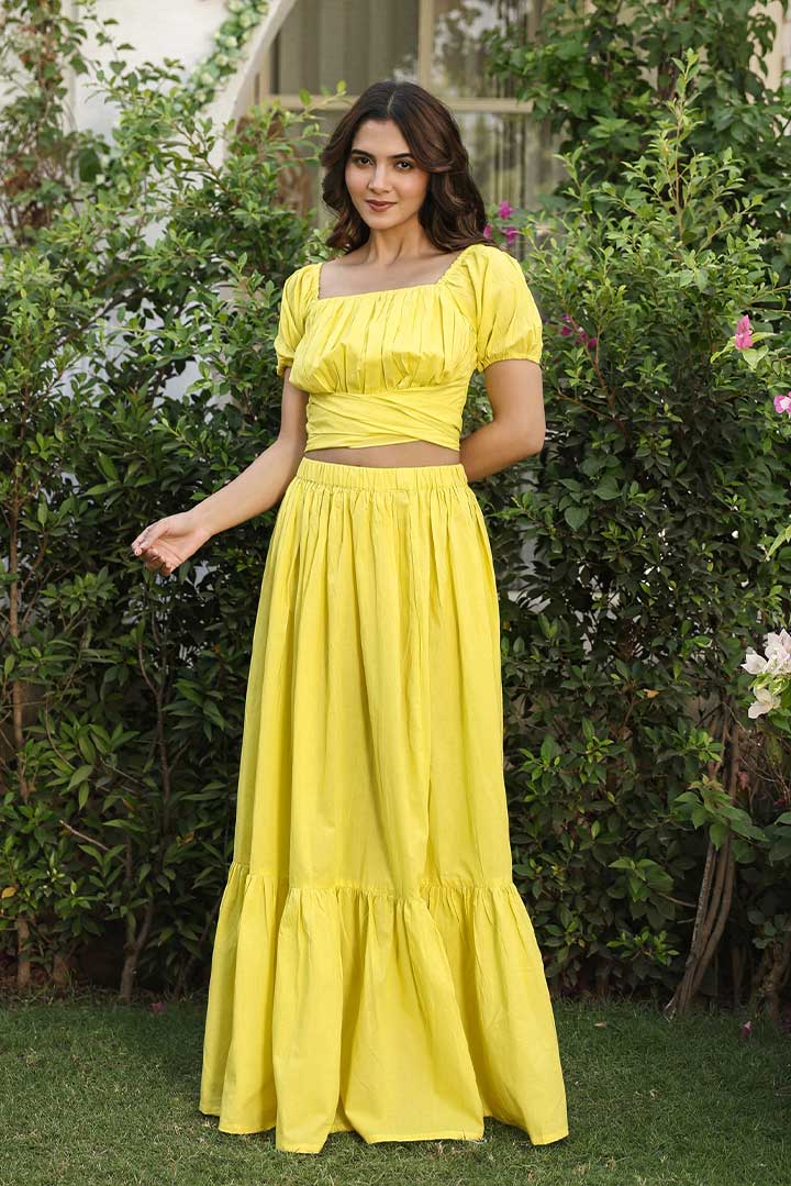 Yellow Back Knotted Cotton Coord Set