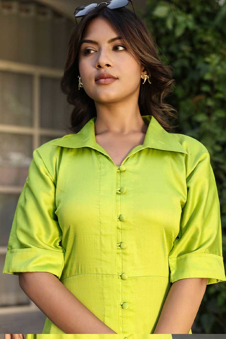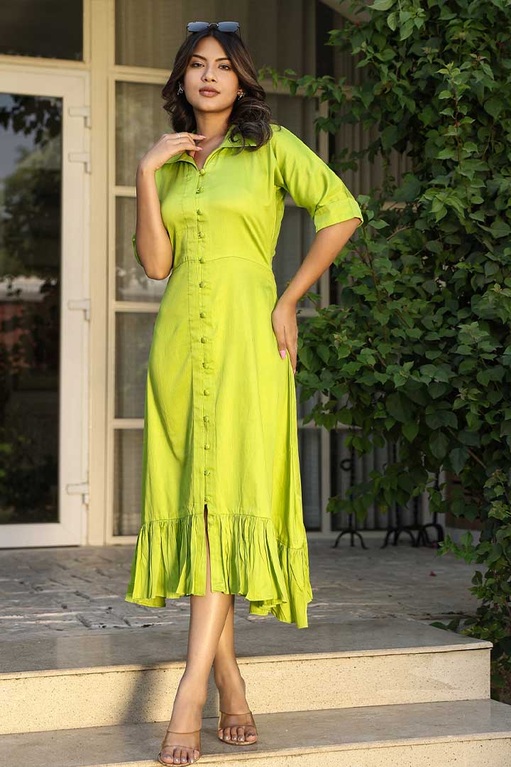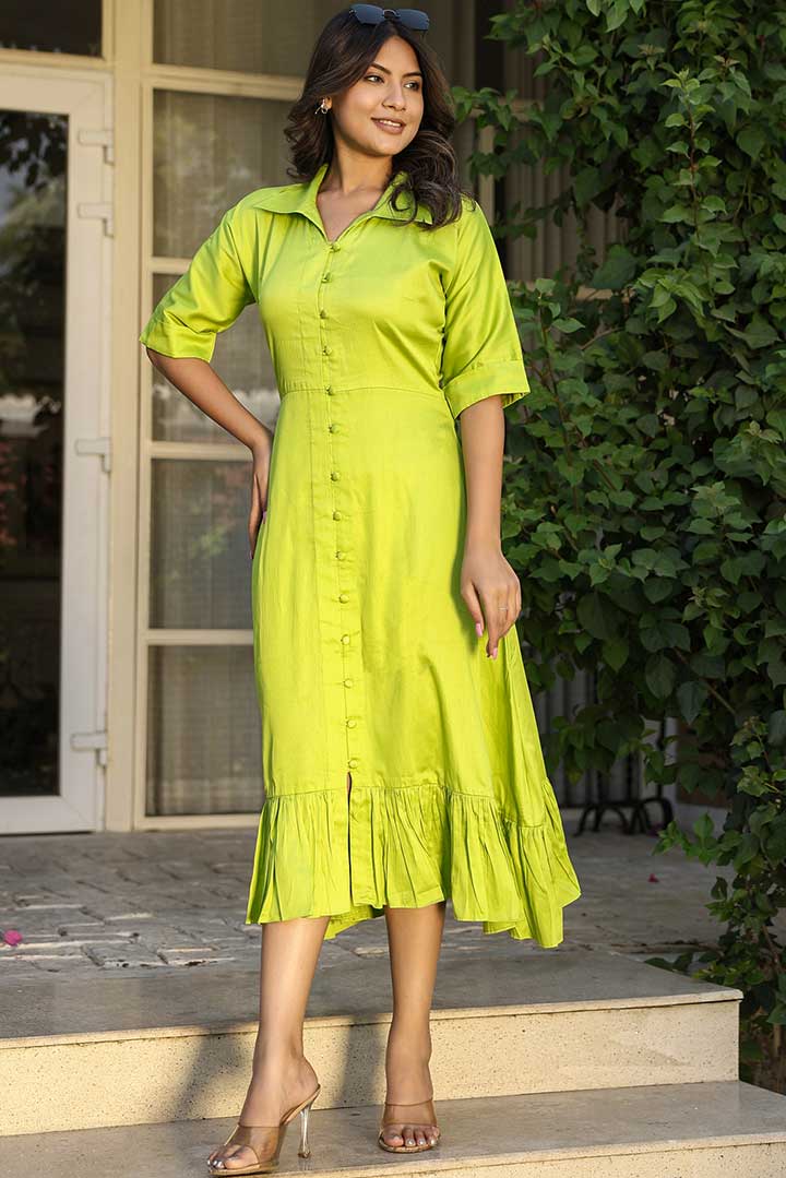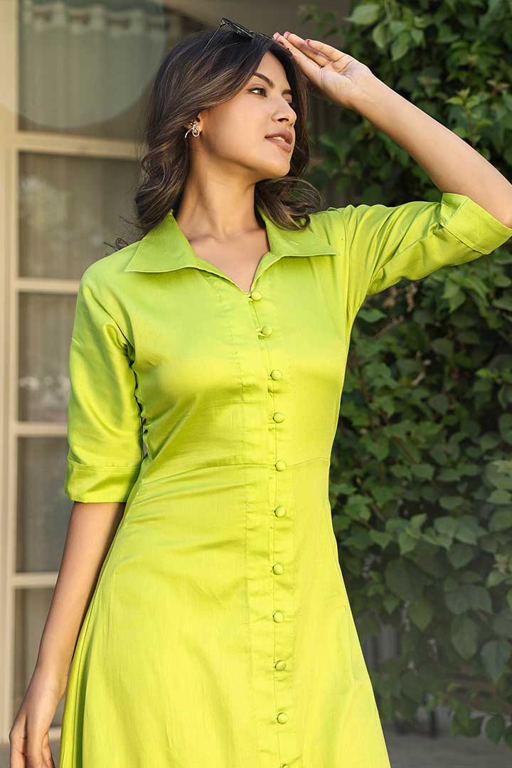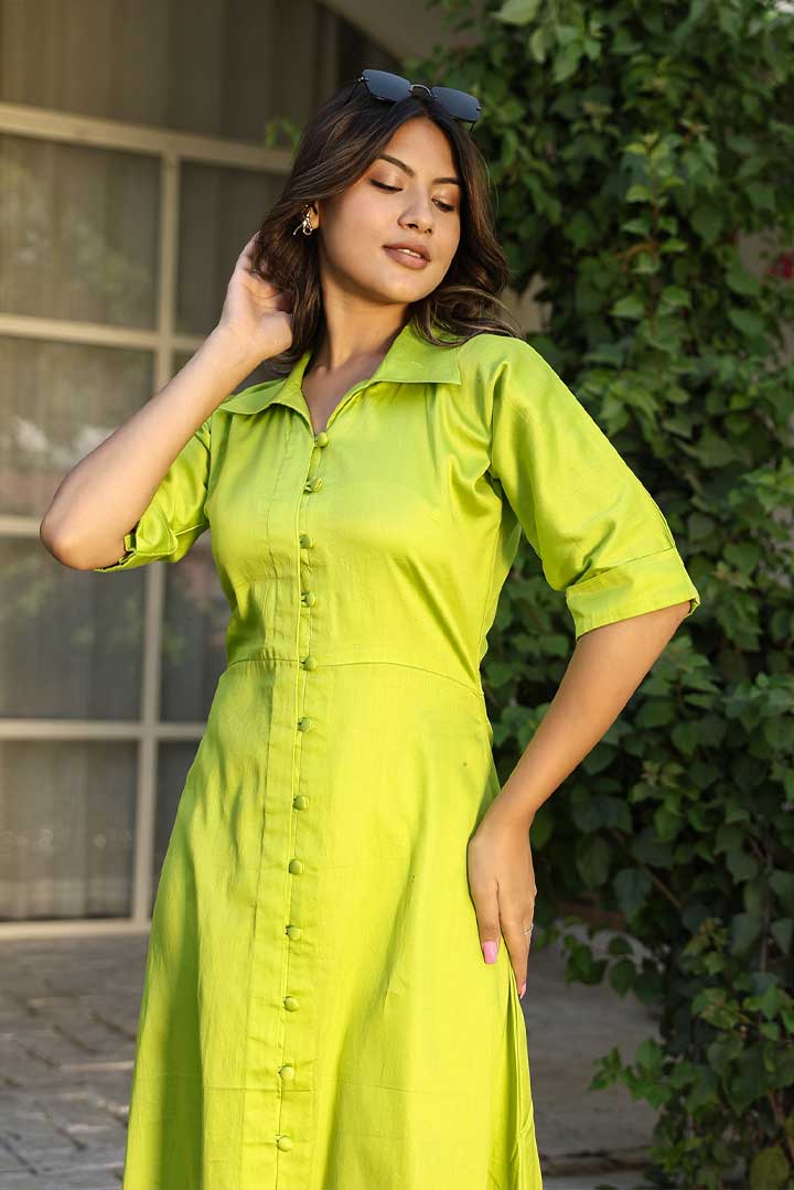 Green Cotton Shirt Dress